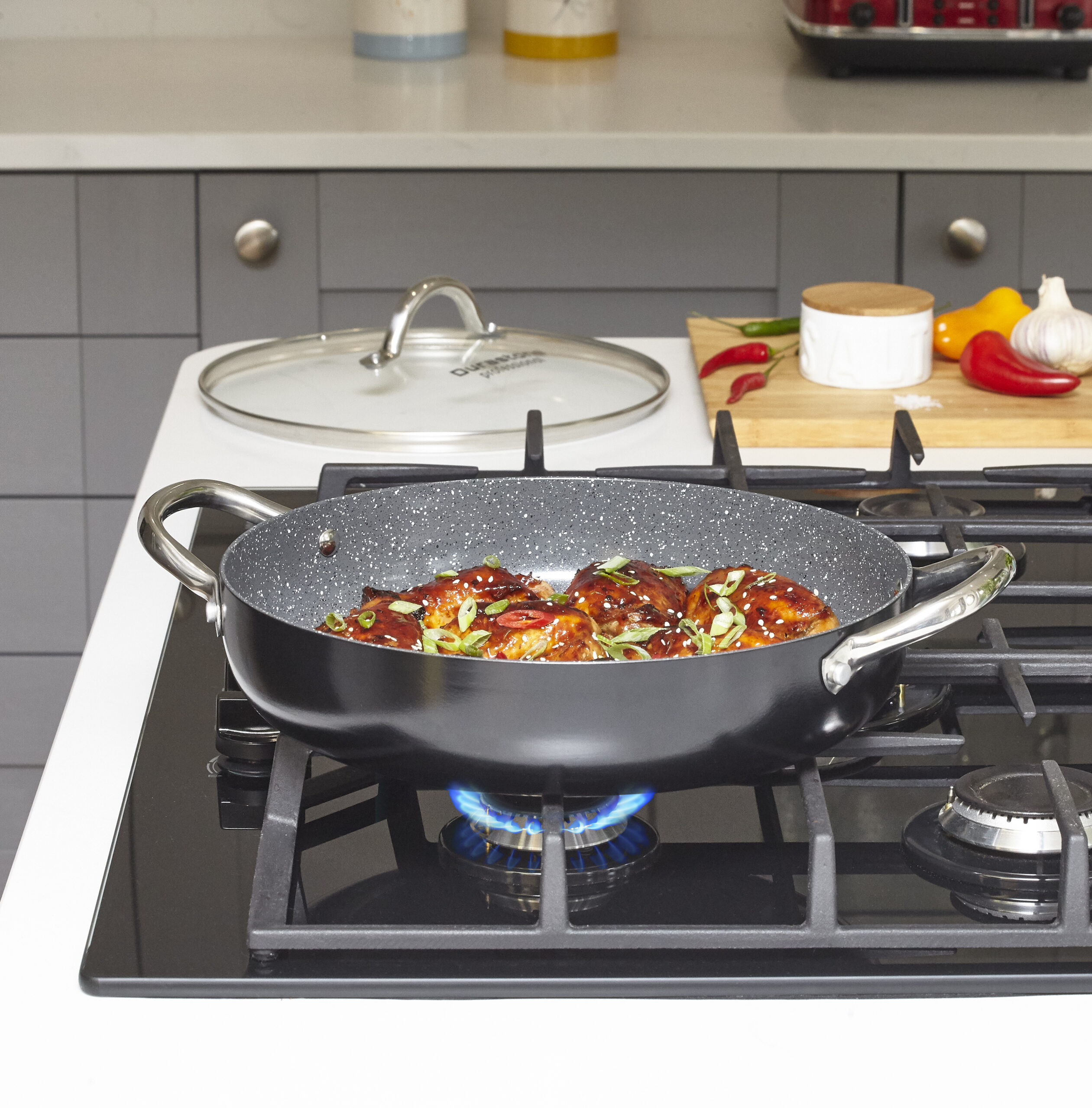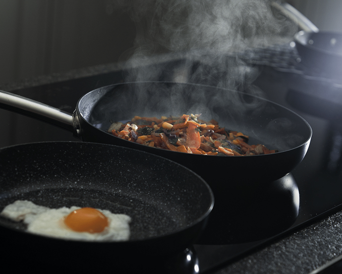 Contemporary cookware combining colour, non- stick performance, durability and everyday value